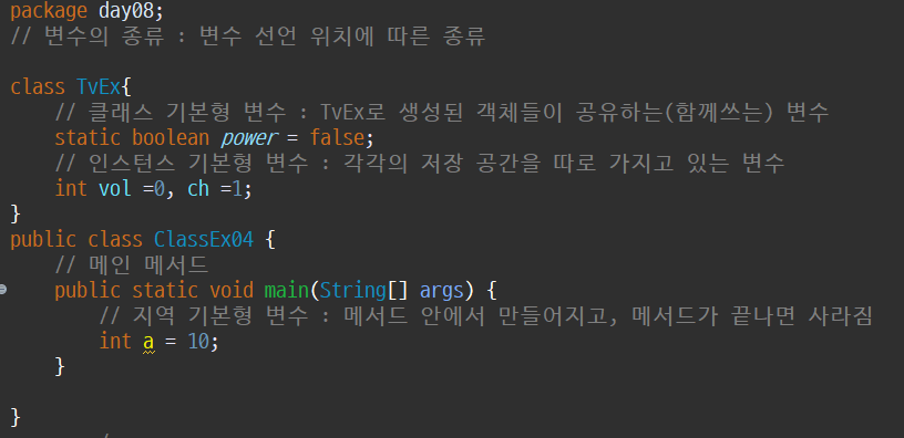 a : 지역변수 (메인 메서드 안에 있으니까)