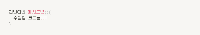 - 메서드 정의 : 어떤 코드를 수행할것인지 미리작성