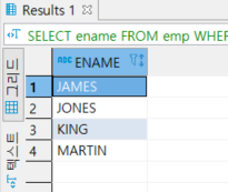Ex) ename 칼럼에서 JAMES와 MARTINE 포함 사이의 값을 가지고 있는 데이터의 ename 조회하기