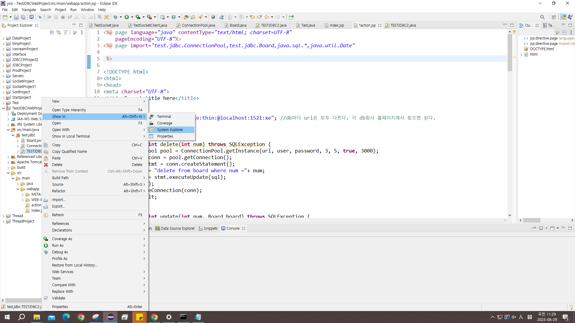 회원가입MVC 파일 세팅 작업 ☑ View ▪ jsp : WEB-INF/member_views/ 안에 jsp파일들 배치 ▪ css, html, imgs, js : WebContent > jsp16 폴더 안에 배치 ☑ Controller ▪ src > web.jsp16.controller 패키지 > new servlet > MemberController.java ☑ Model ▪ src > web.jsp16.model 패키지 > SuperBean, DAO, DTO, jsp 파일당 Bean 하나씩 만들기(Super Bean 구현 클래스) ☑ properties 파일 ☑ web.xml jsp&Bean 클래스들 수정 ☑ 경로 : css, imgs : /web/jsp16/... : webContent 아래 둔 소..